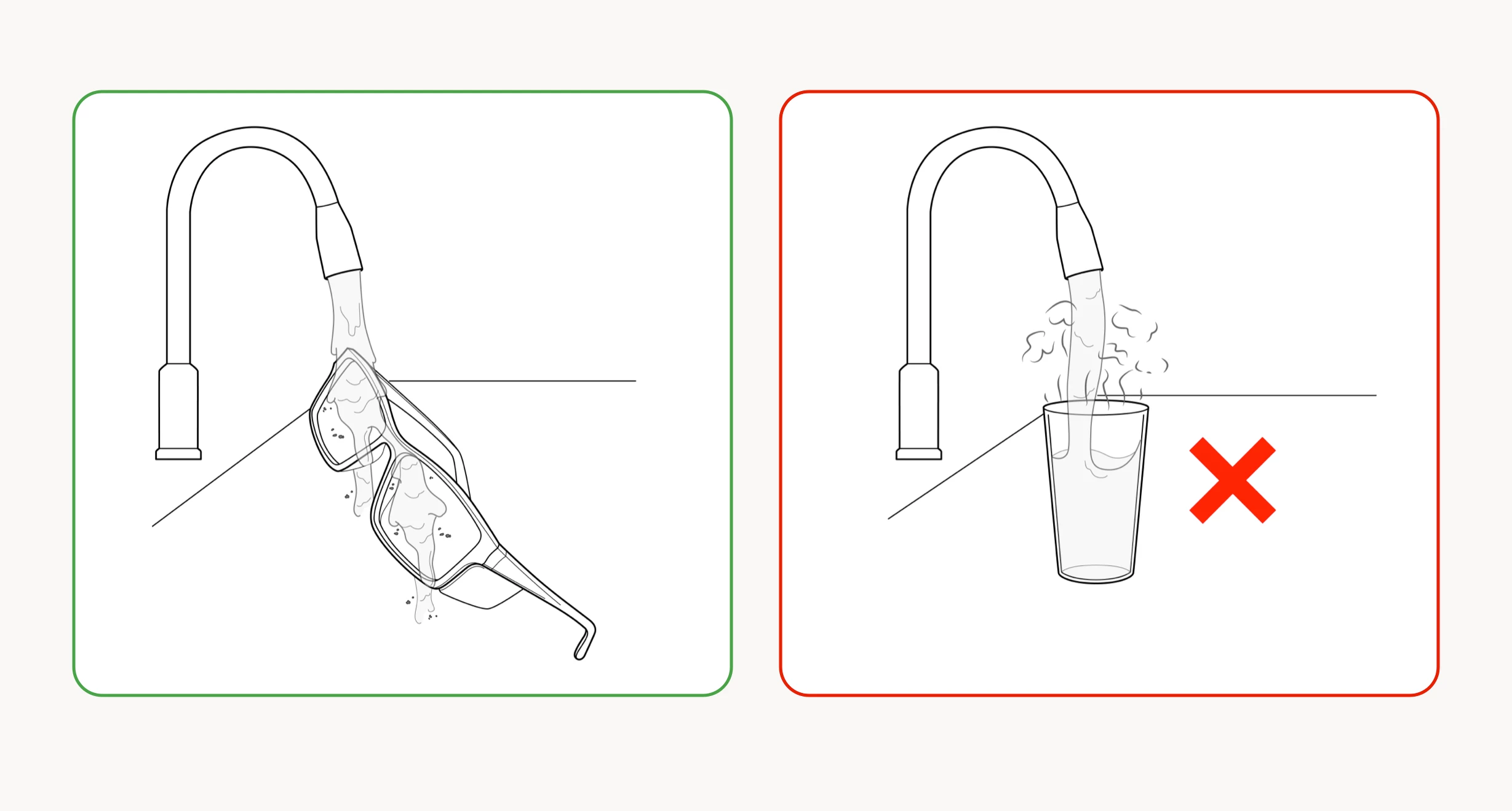 Avant de commencer à nettoyer vos lunettes, il est conseillé de les rincer à l'eau froide. Cela permet d'éliminer la poussière et les petites particules de saleté sans rayer les verres.