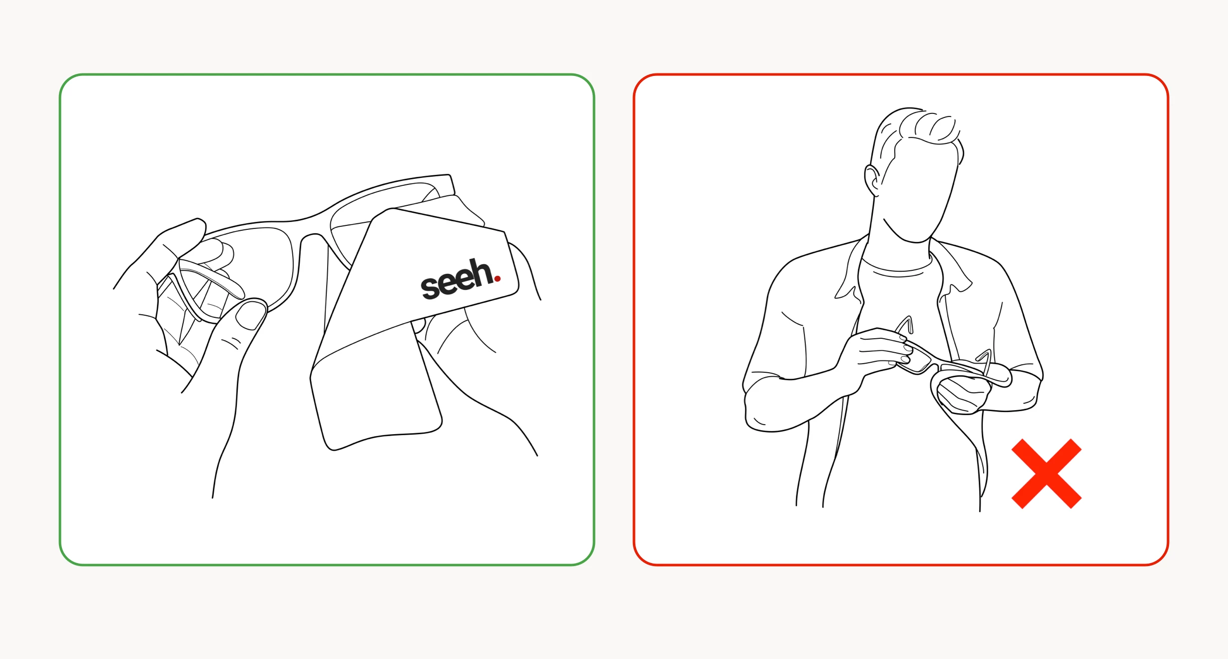 Astuce: Ayez toujours un chiffon en microfibre à portée de main dans votre étui à lunettes. Cela vous évite d'utiliser accidentellement un matériau moins adapté pour nettoyer vos lunettes.
